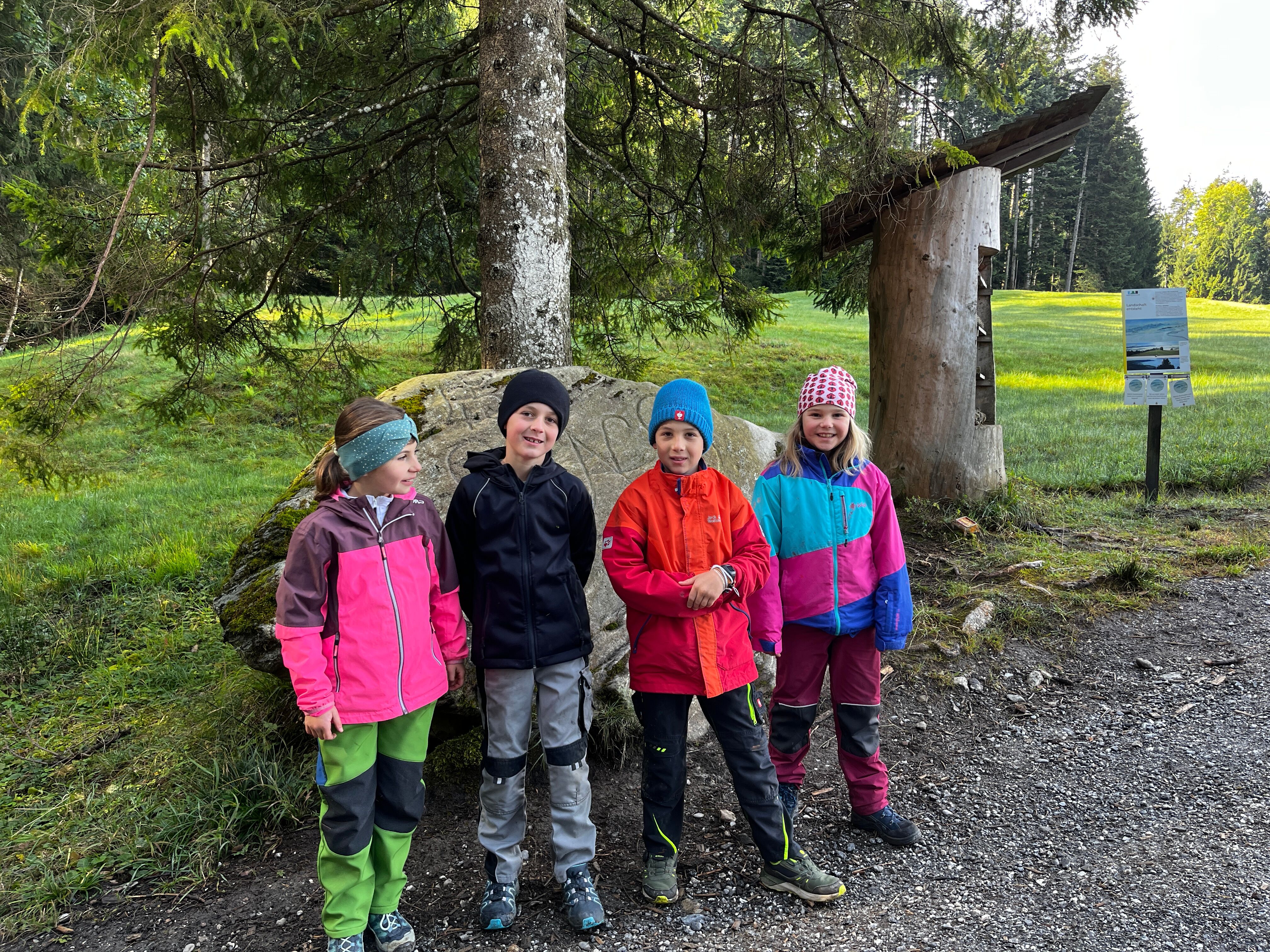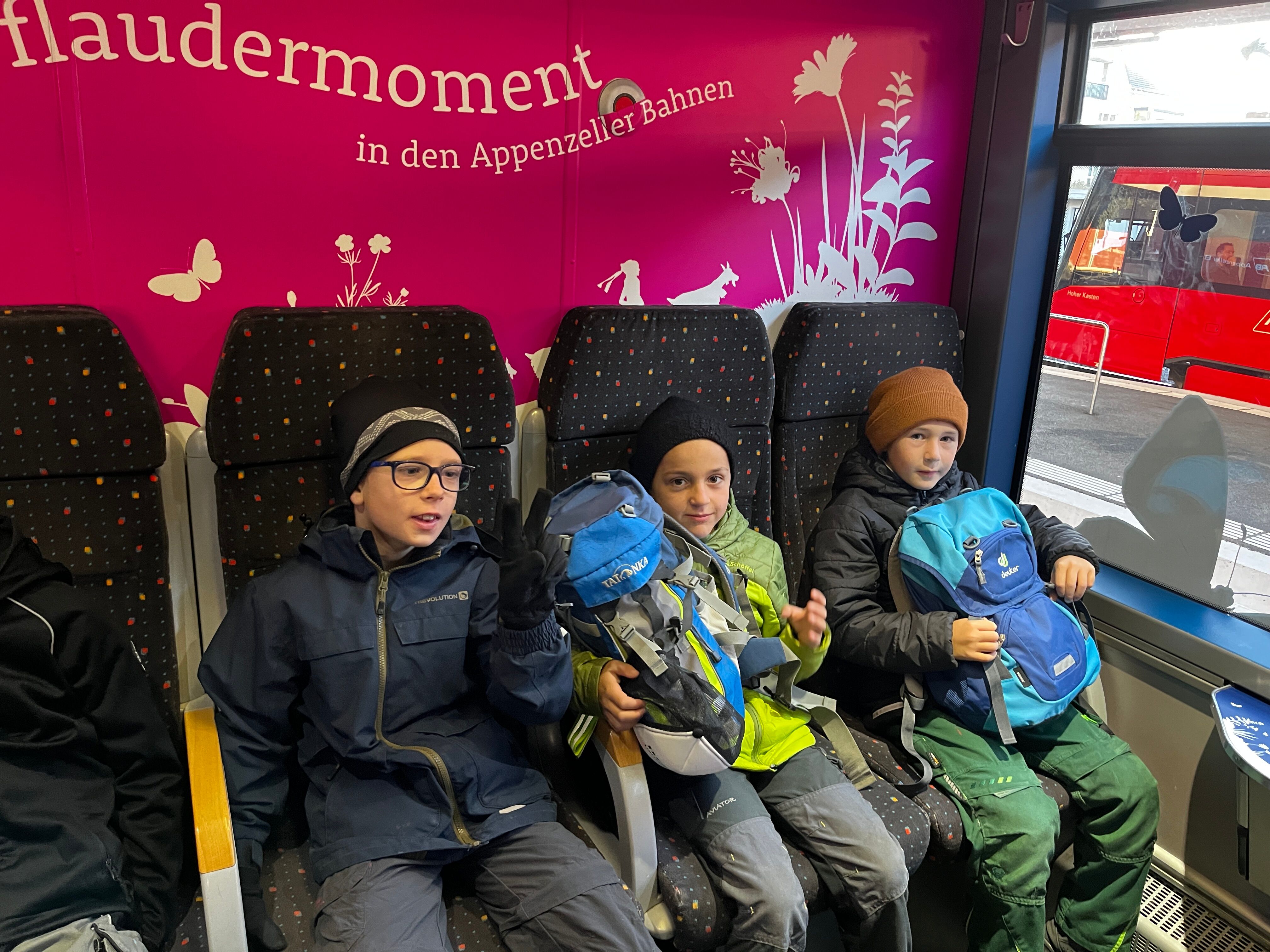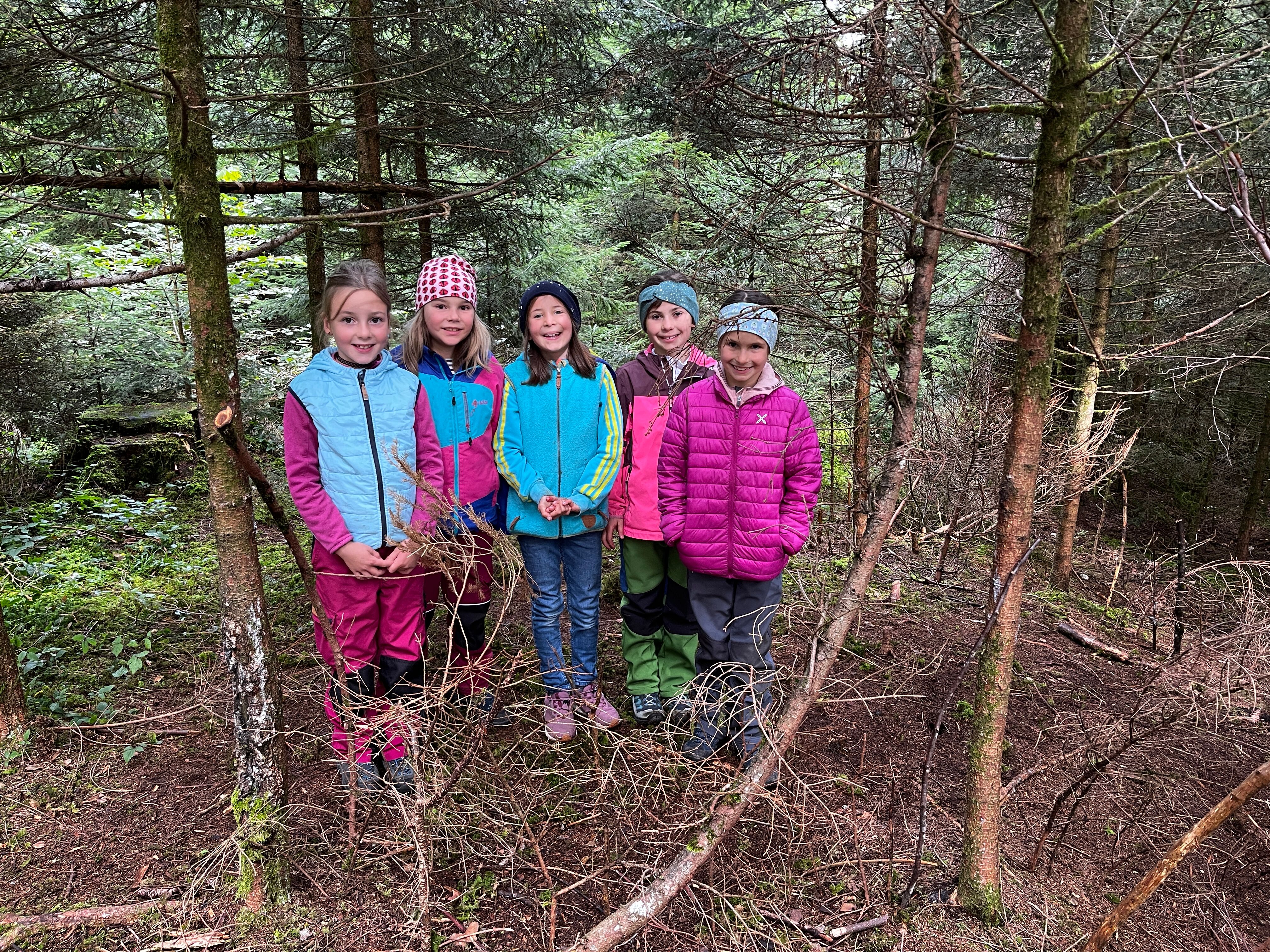 Am letzten Schultag vor den Herbstferien unternahm die 3. Klasse einen Ausflug in den Walderlebnisraum Gais. Nach der Zugfahrt und einer kurzen Wanderung erhielten die Kinder eine spannende Führung zum Thema Vögel – passend zum aktuellen NMG-Unterricht. Mit grosser Begeisterung erfuhren sie Interessantes über den Mauersegler, die Tannenmeise, den Buntspecht und viele weitere Vogelarten. Anschliessend bauten die Schülerinnen und Schüler Hütten im Wald und genossen ihr Mittagessen am Feuer. Auf der Rückreise konnten sie die Wartezeit in Appenzell auf dem Spielplatz verbringen. Ein gelungener Start in die Herbstferien!