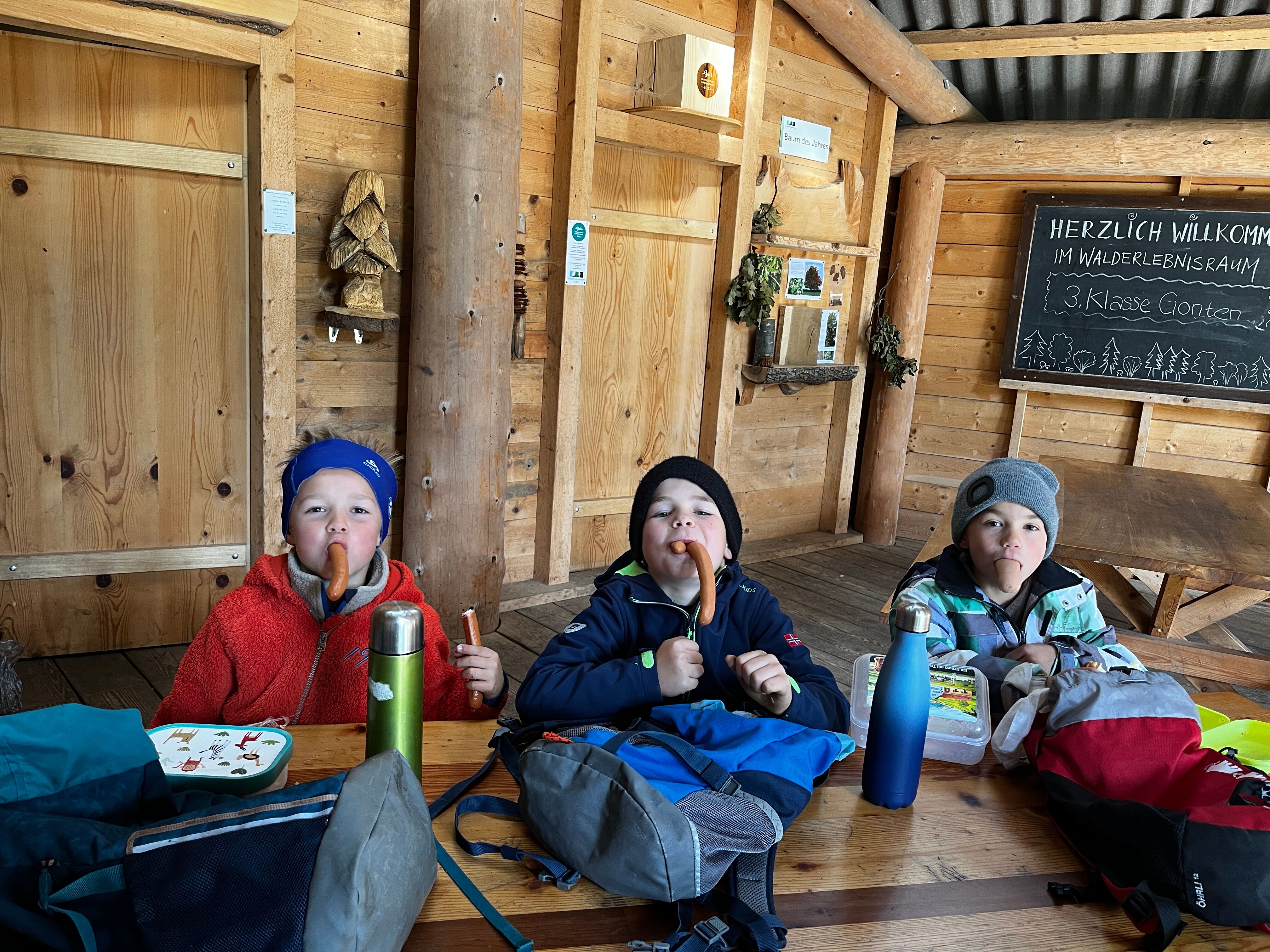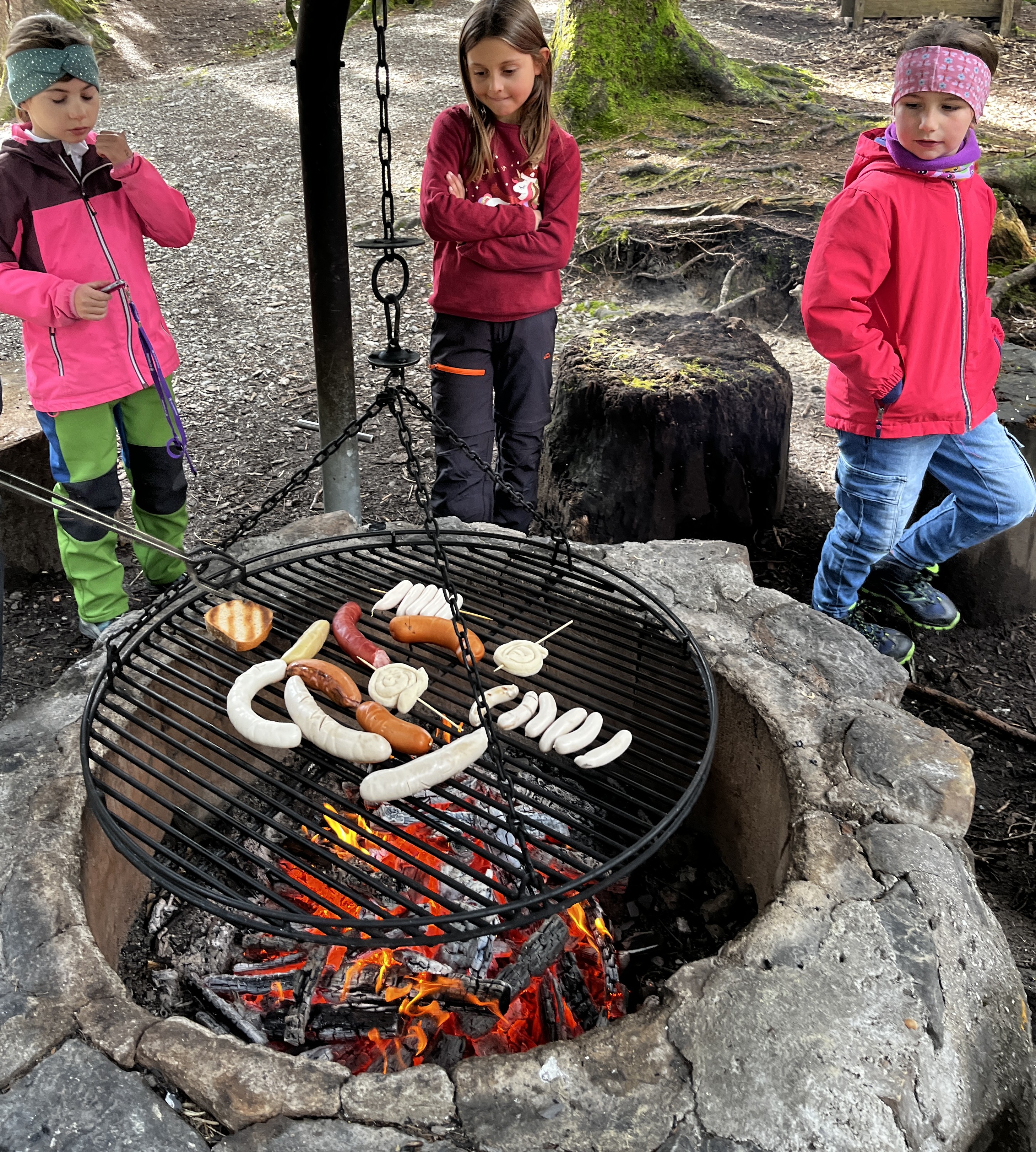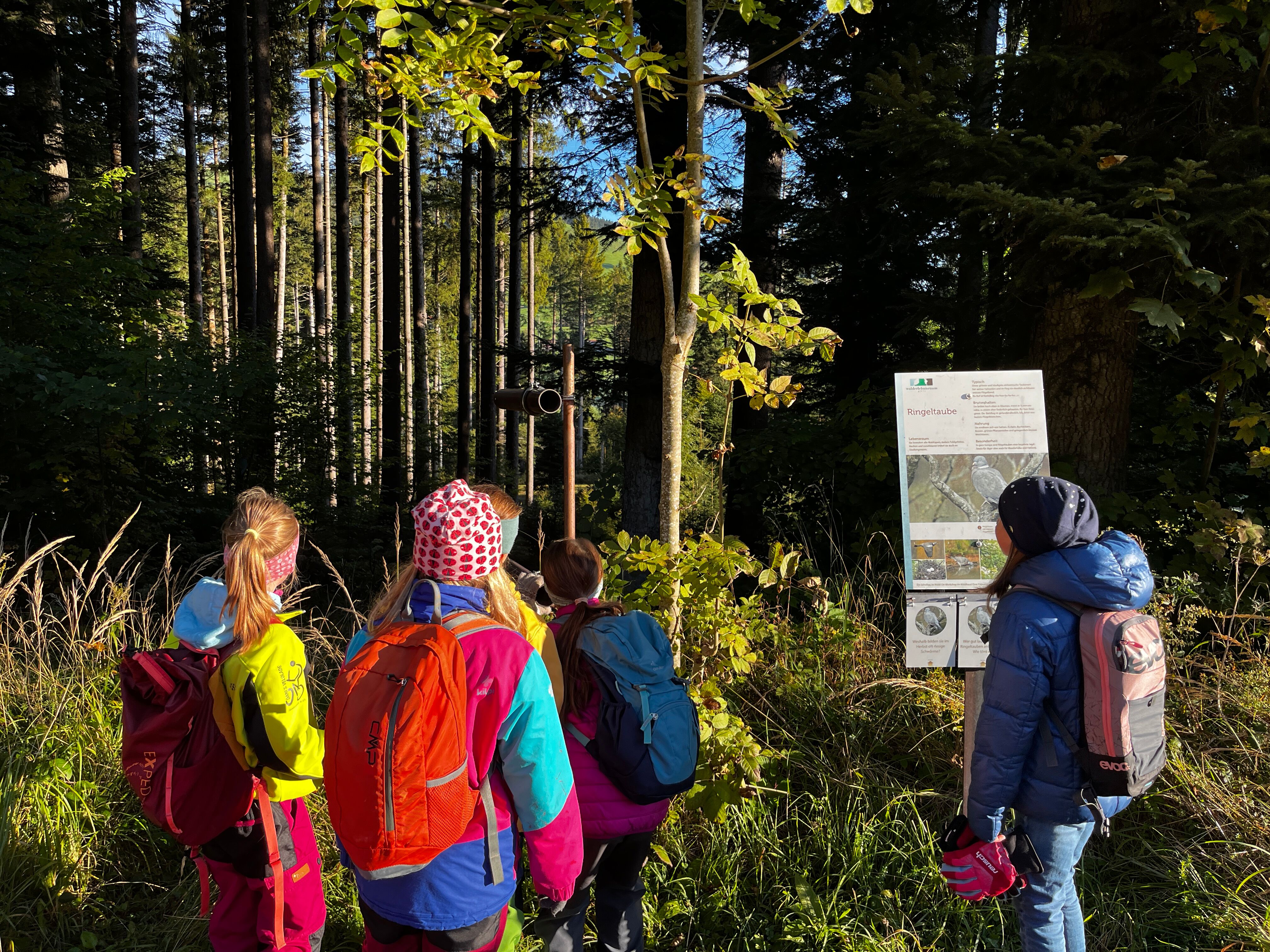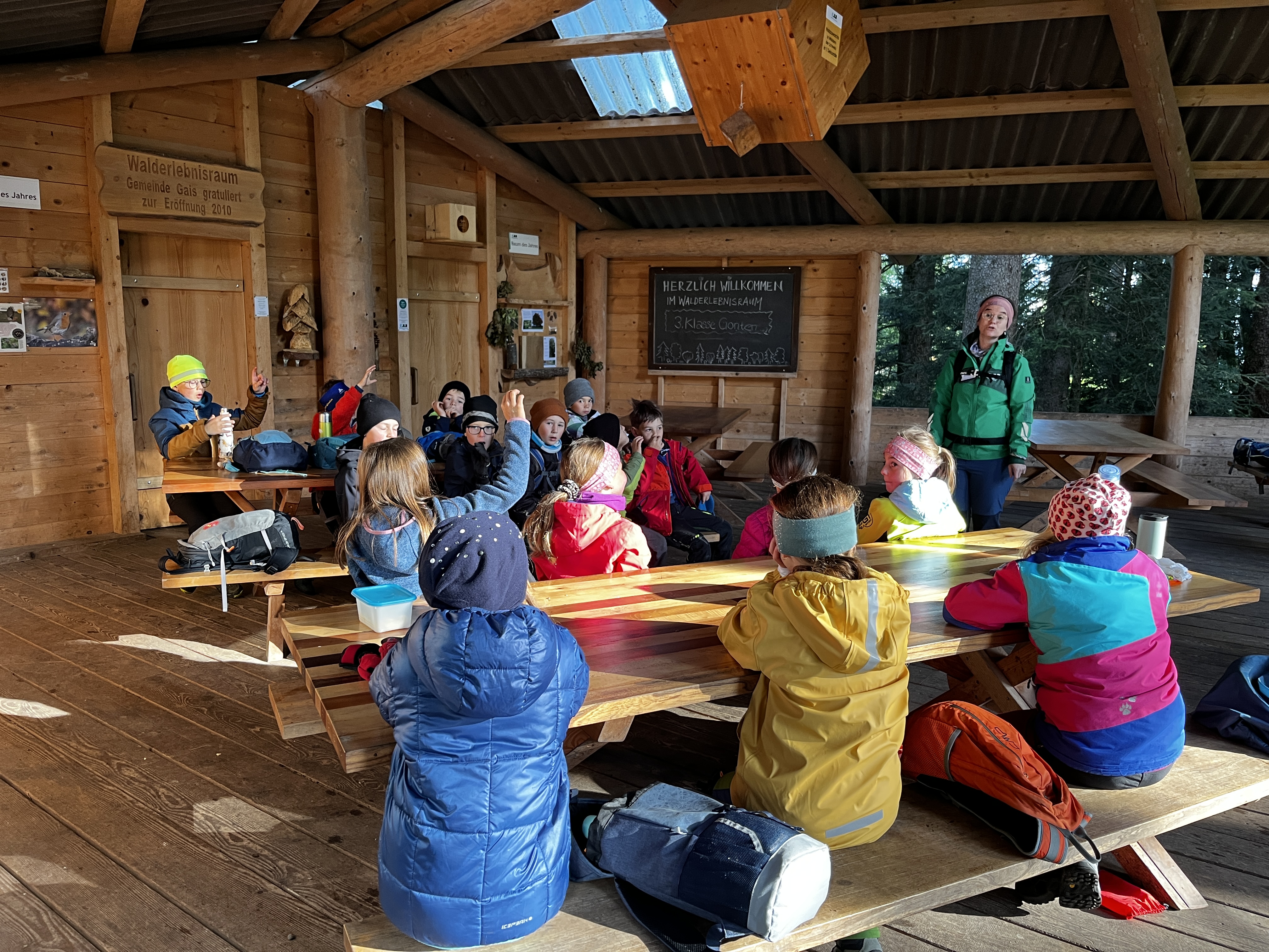 Am letzten Schultag vor den Herbstferien unternahm die 3. Klasse einen Ausflug in den Walderlebnisraum Gais. Nach der Zugfahrt und einer kurzen Wanderung erhielten die Kinder eine spannende Führung zum Thema Vögel – passend zum aktuellen NMG-Unterricht. Mit grosser Begeisterung erfuhren sie Interessantes über den Mauersegler, die Tannenmeise, den Buntspecht und viele weitere Vogelarten. Anschliessend bauten die Schülerinnen und Schüler Hütten im Wald und genossen ihr Mittagessen am Feuer. Auf der Rückreise konnten sie die Wartezeit in Appenzell auf dem Spielplatz verbringen. Ein gelungener Start in die Herbstferien!